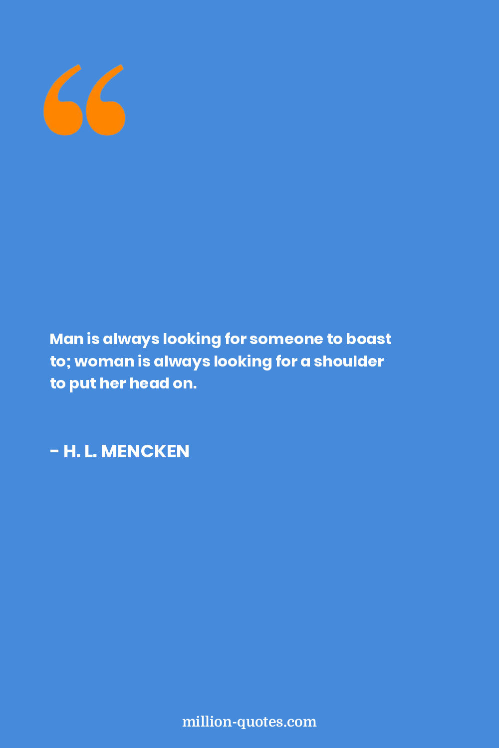 Man is always looking for someone to boast to; woman is always looking for a shoulder to put her head on.