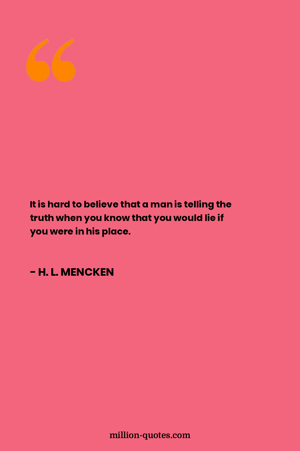 It is hard to believe that a man is telling the truth when you know that you would lie if you were in his place.