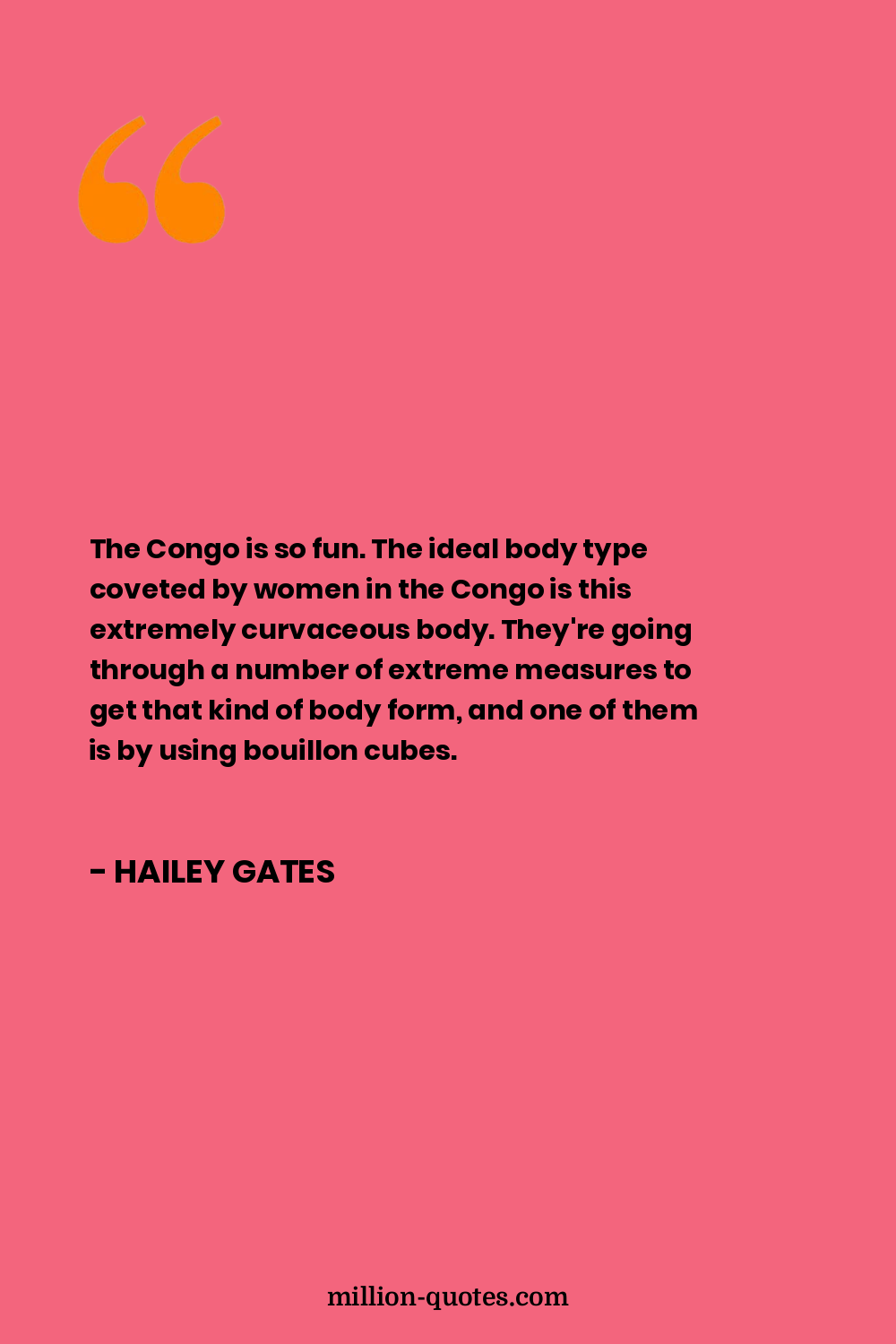 The Congo is so fun. The ideal body type coveted by women in the Congo is this extremely curvaceous body. They're going through a number of extreme measures to get that kind of body form, and one of them is by using bouillon cubes.
