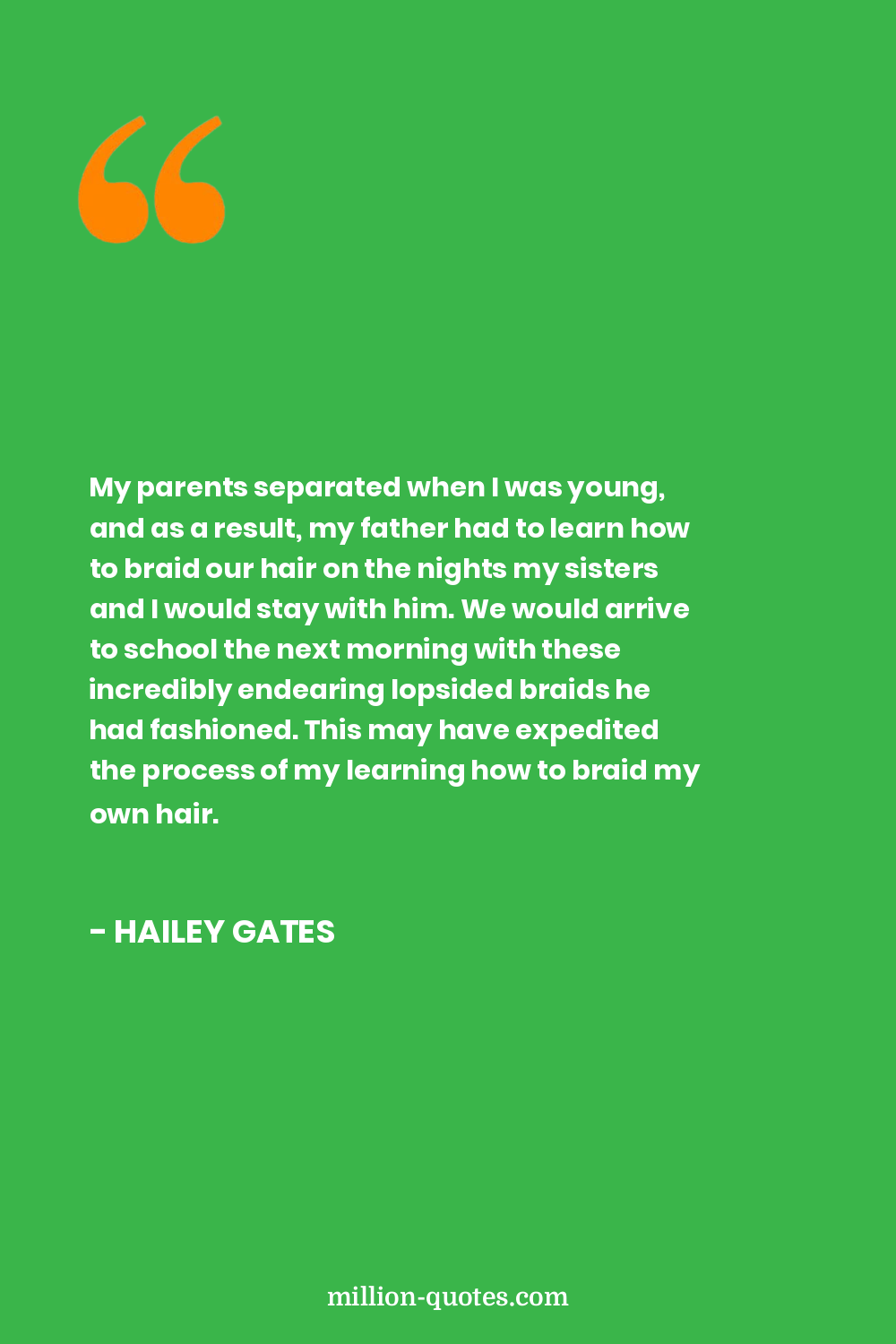 My parents separated when I was young, and as a result, my father had to learn how to braid our hair on the nights my sisters and I would stay with him. We would arrive to school the next morning with these incredibly endearing lopsided braids he had fashioned. This may have expedited the process of my learning how to braid my own hair.