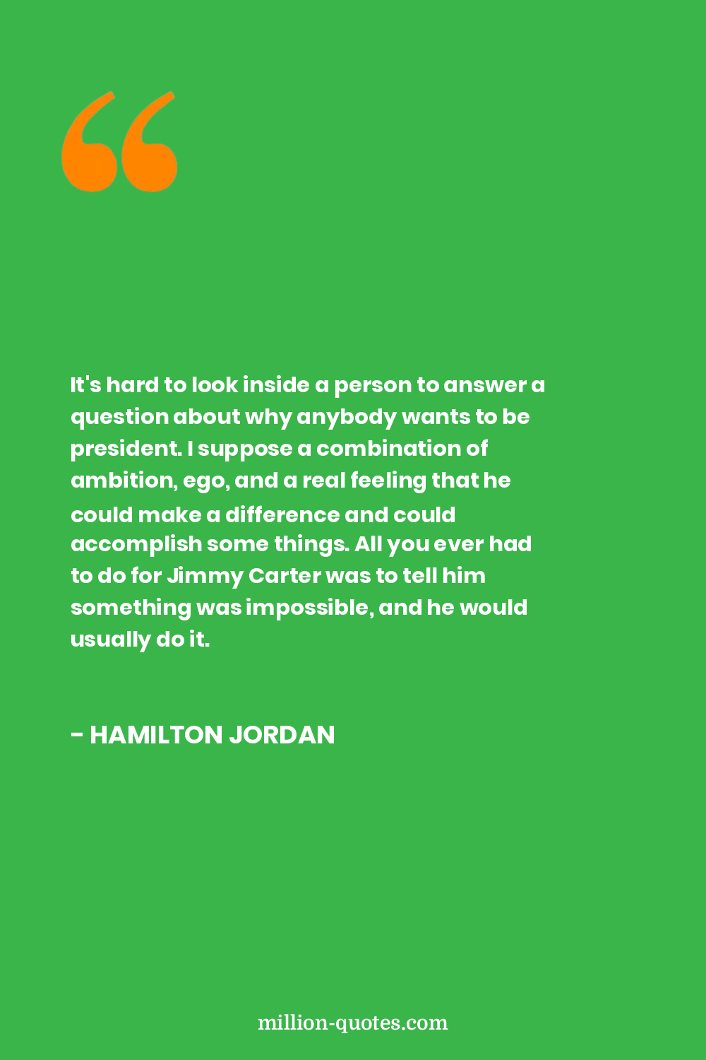 It's hard to look inside a person to answer a question about why anybody wants to be president. I suppose a combination of ambition, ego, and a real feeling that he could make a difference and could accomplish some things. All you ever had to do for Jimmy Carter was to tell him something was impossible, and he would usually do it.