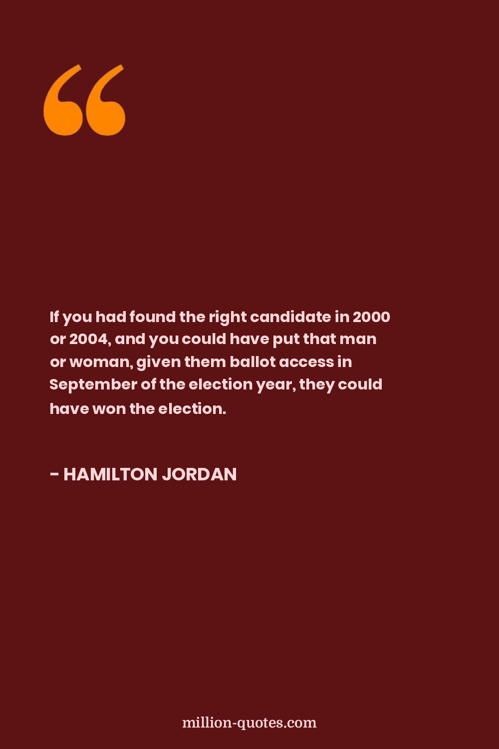 If you had found the right candidate in 2000 or 2004, and you could have put that man or woman, given them ballot access in September of the election year, they could have won the election.