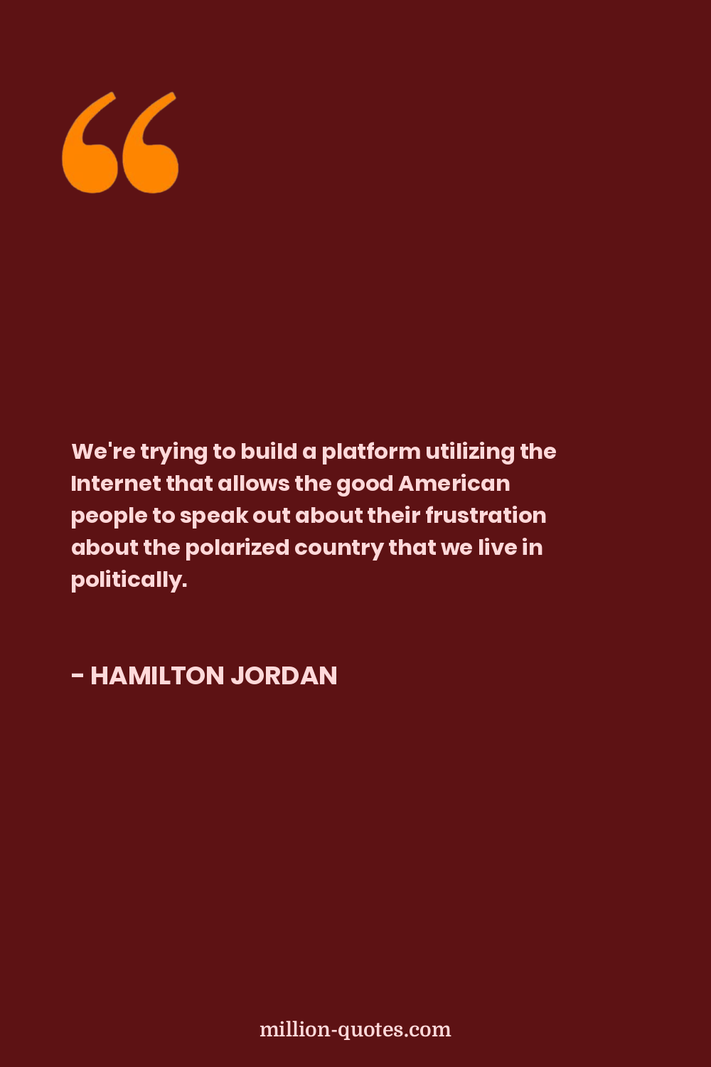 We're trying to build a platform utilizing the Internet that allows the good American people to speak out about their frustration about the polarized country that we live in politically.