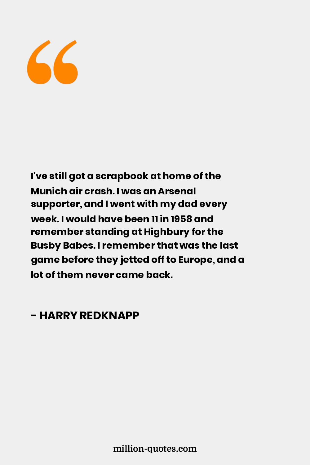 I've still got a scrapbook at home of the Munich air crash. I was an Arsenal supporter, and I went with my dad every week. I would have been 11 in 1958 and remember standing at Highbury for the Busby Babes. I remember that was the last game before they jetted off to Europe, and a lot of them never came back.