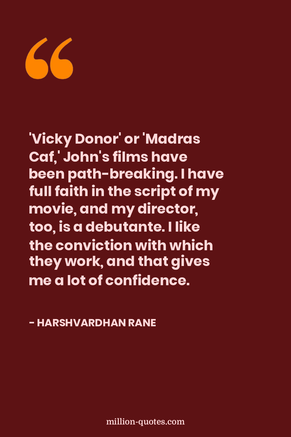 'Vicky Donor' or 'Madras Caf,' John's films have been path-breaking. I have full faith in the script of my movie, and my director, too, is a debutante. I like the conviction with which they work, and that gives me a lot of confidence.