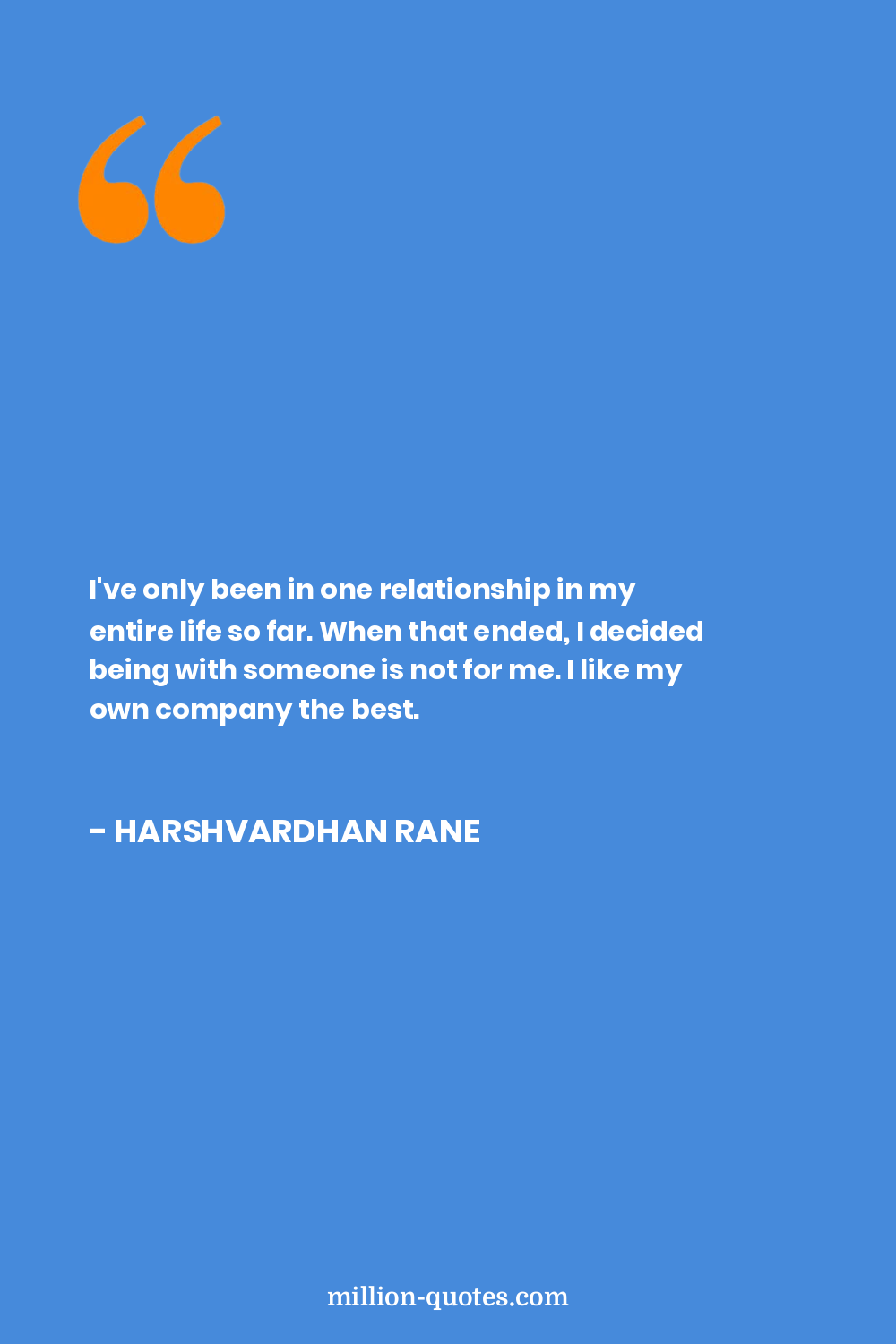 I've only been in one relationship in my entire life so far. When that ended, I decided being with someone is not for me. I like my own company the best.