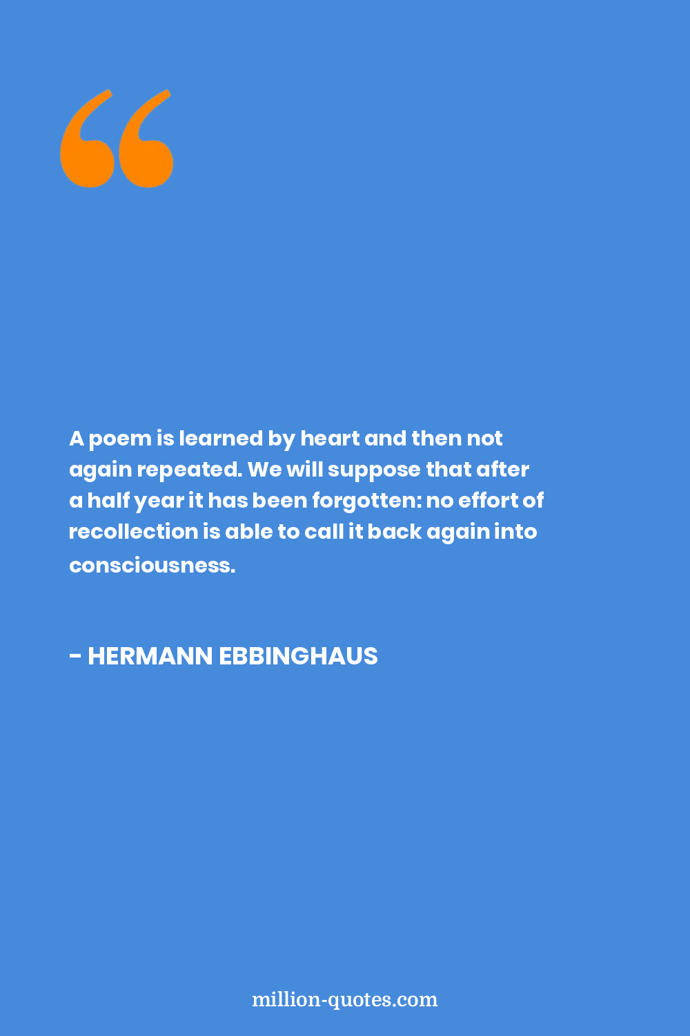 A poem is learned by heart and then not again repeated. We will suppose that after a half year it has been forgotten: no effort of recollection is able to call it back again into consciousness.