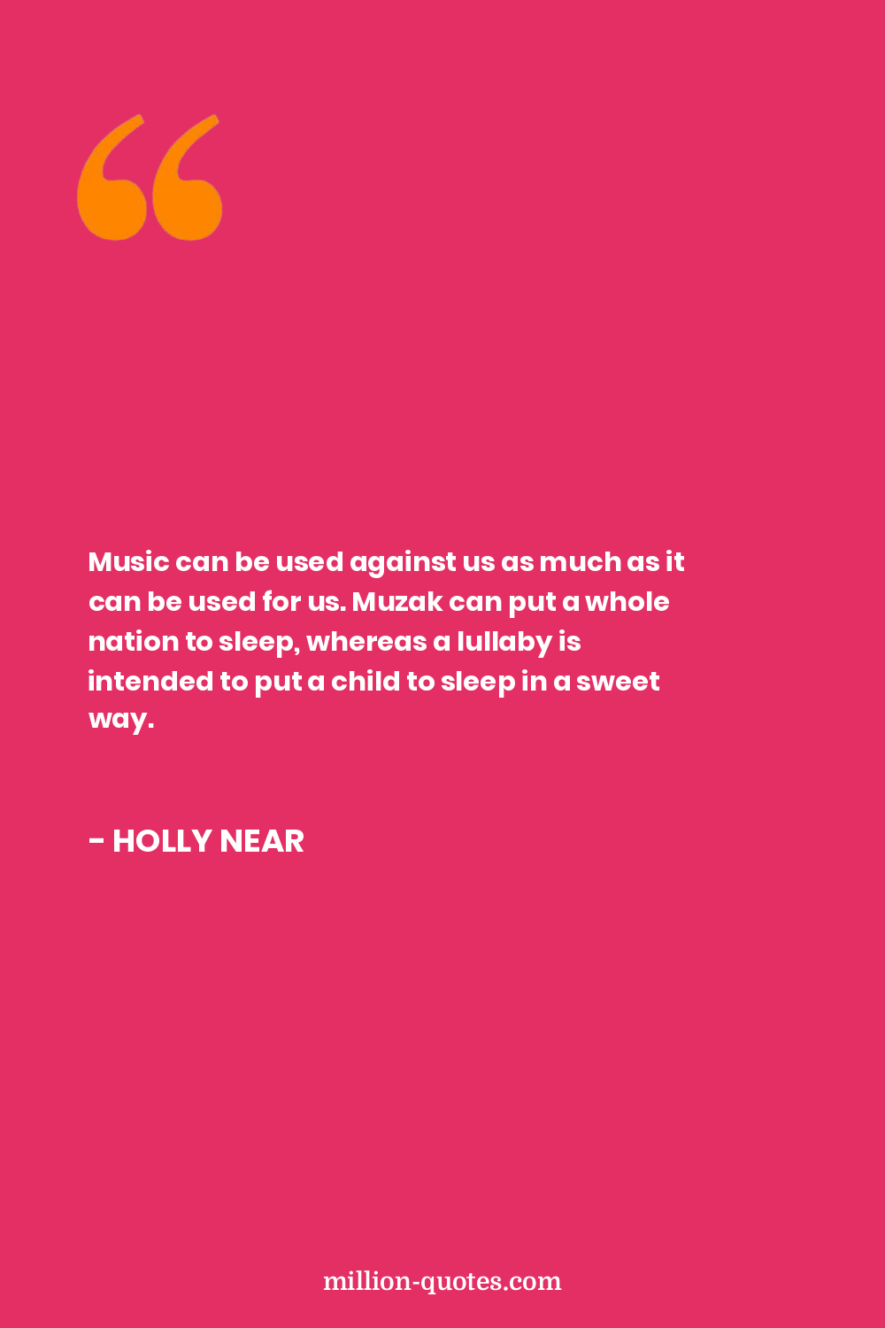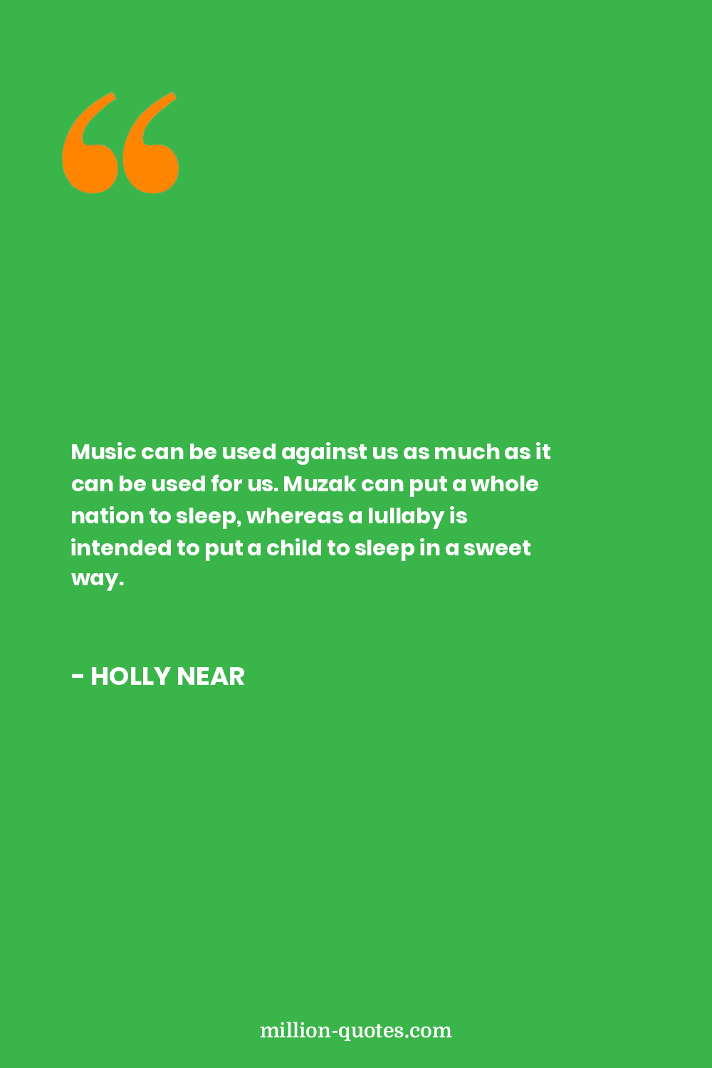 Music can be used against us as much as it can be used for us. Muzak can put a whole nation to sleep, whereas a lullaby is intended to put a child to sleep in a sweet way.
