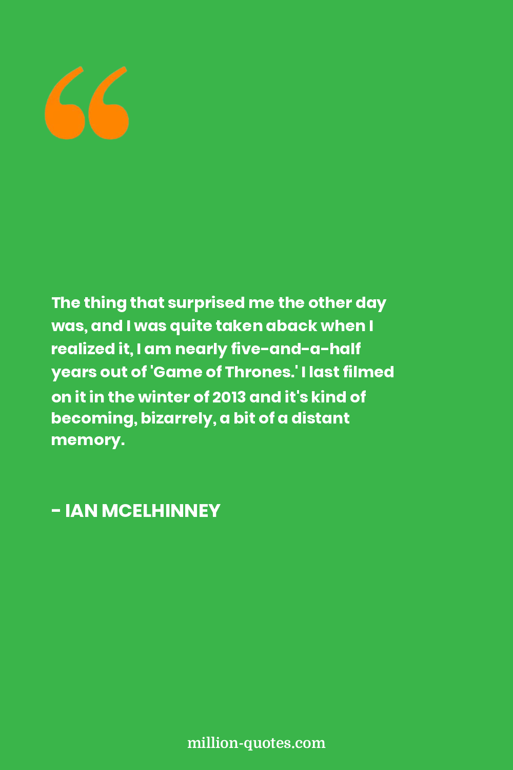 The thing that surprised me the other day was, and I was quite taken aback when I realized it, I am nearly five-and-a-half years out of 'Game of Thrones.' I last filmed on it in the winter of 2013 and it's kind of becoming, bizarrely, a bit of a distant memory.