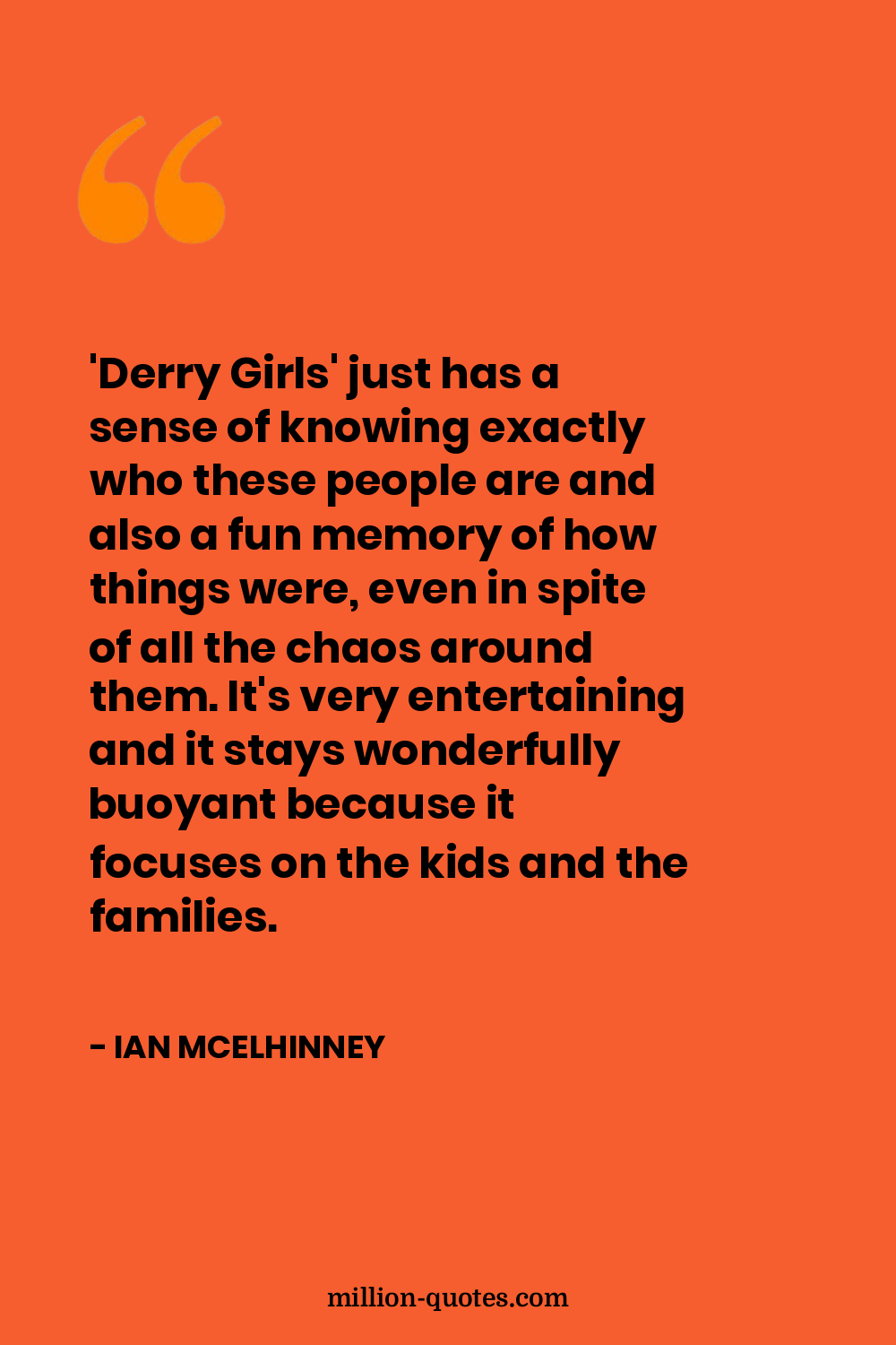 'Derry Girls' just has a sense of knowing exactly who these people are and also a fun memory of how things were, even in spite of all the chaos around them. It's very entertaining and it stays wonderfully buoyant because it focuses on the kids and the families.
