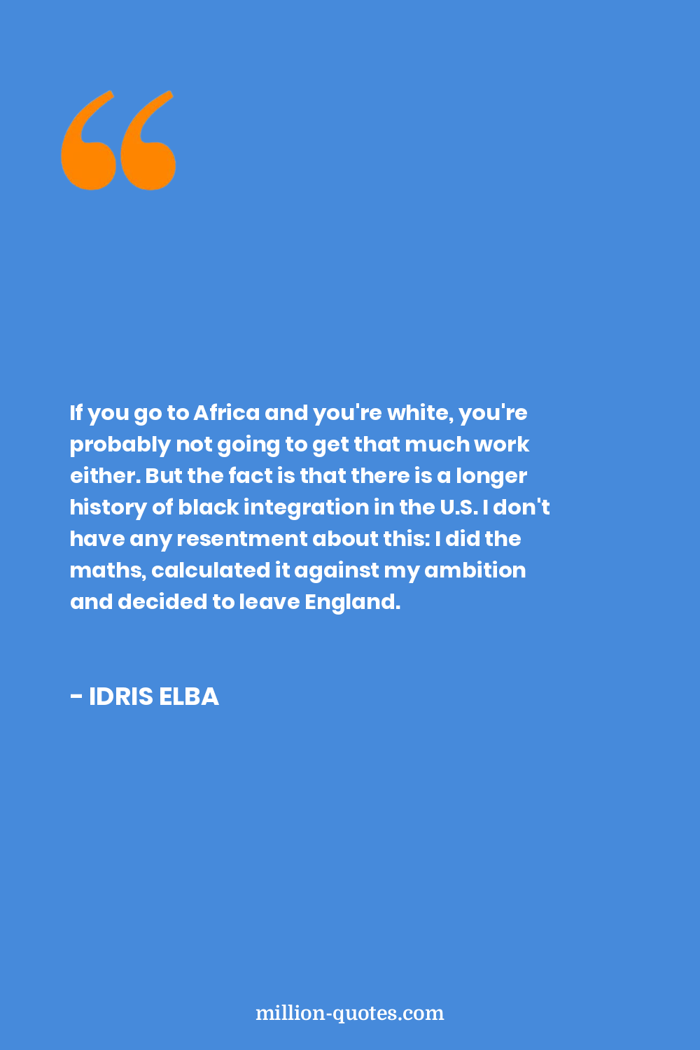 If you go to Africa and you're white, you're probably not going to get that much work either. But the fact is that there is a longer history of black integration in the U.S. I don't have any resentment about this: I did the maths, calculated it against my ambition and decided to leave England.