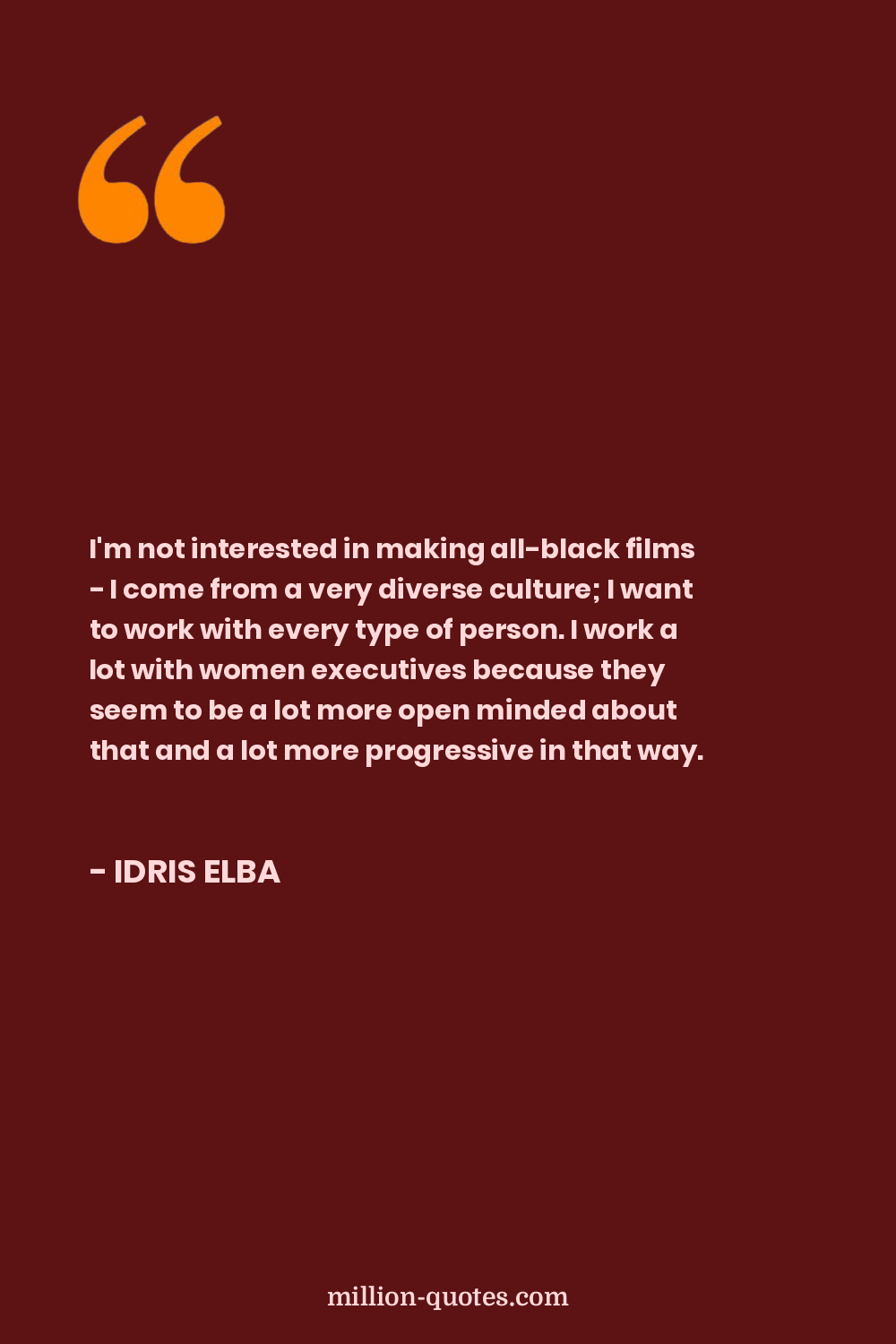 I'm not interested in making all-black films - I come from a very diverse culture; I want to work with every type of person. I work a lot with women executives because they seem to be a lot more open minded about that and a lot more progressive in that way.