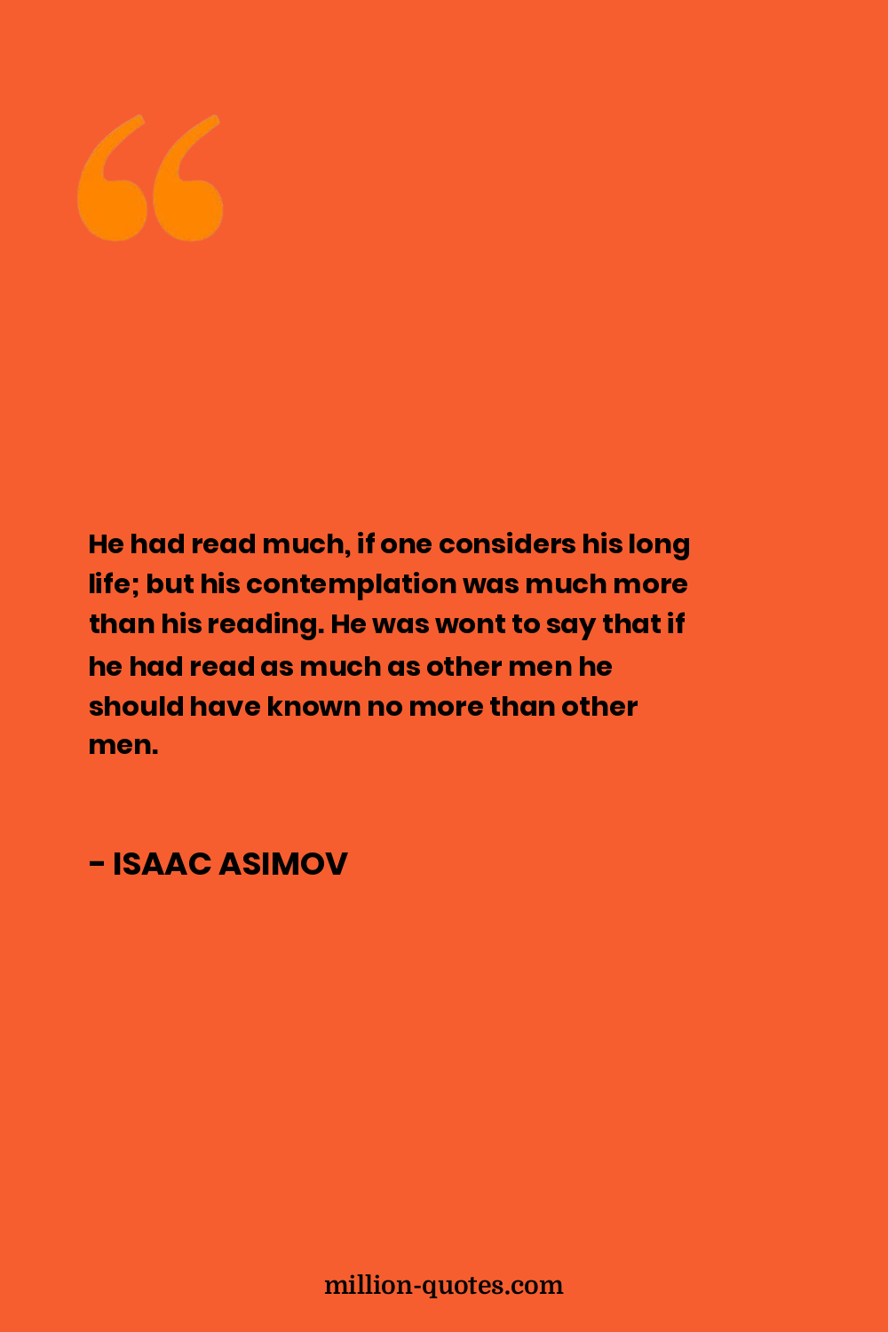 He had read much, if one considers his long life; but his contemplation was much more than his reading. He was wont to say that if he had read as much as other men he should have known no more than other men.