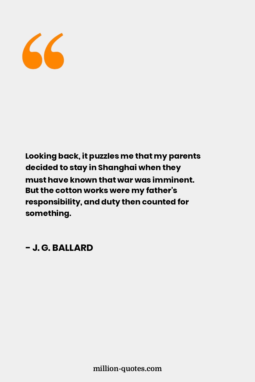Looking back, it puzzles me that my parents decided to stay in Shanghai when they must have known that war was imminent. But the cotton works were my father's responsibility, and duty then counted for something.