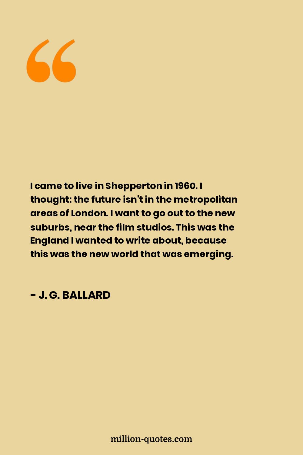 I came to live in Shepperton in 1960. I thought: the future isn't in the metropolitan areas of London. I want to go out to the new suburbs, near the film studios. This was the England I wanted to write about, because this was the new world that was emerging.
