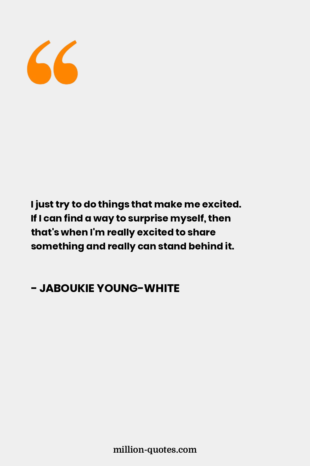 I just try to do things that make me excited. If I can find a way to surprise myself, then that's when I'm really excited to share something and really can stand behind it.