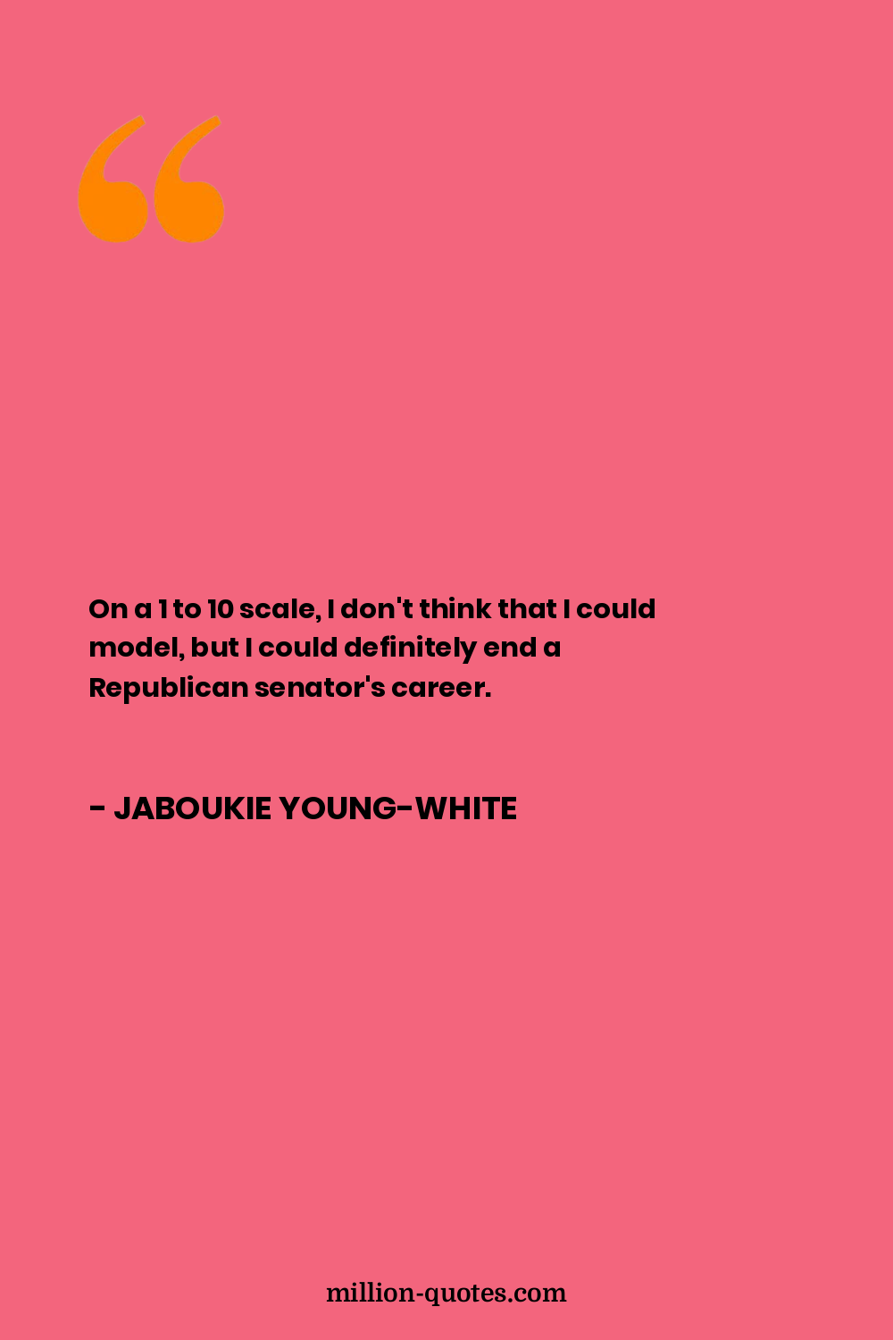 On a 1 to 10 scale, I don't think that I could model, but I could definitely end a Republican senator's career.