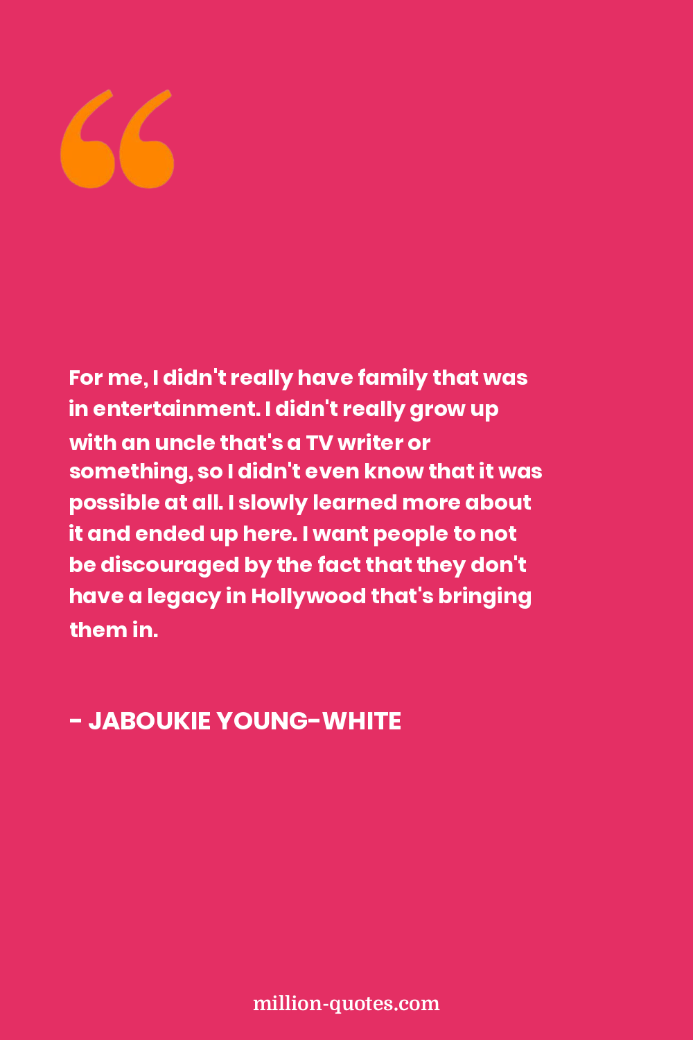 For me, I didn't really have family that was in entertainment. I didn't really grow up with an uncle that's a TV writer or something, so I didn't even know that it was possible at all. I slowly learned more about it and ended up here. I want people to not be discouraged by the fact that they don't have a legacy in Hollywood that's bringing them in.