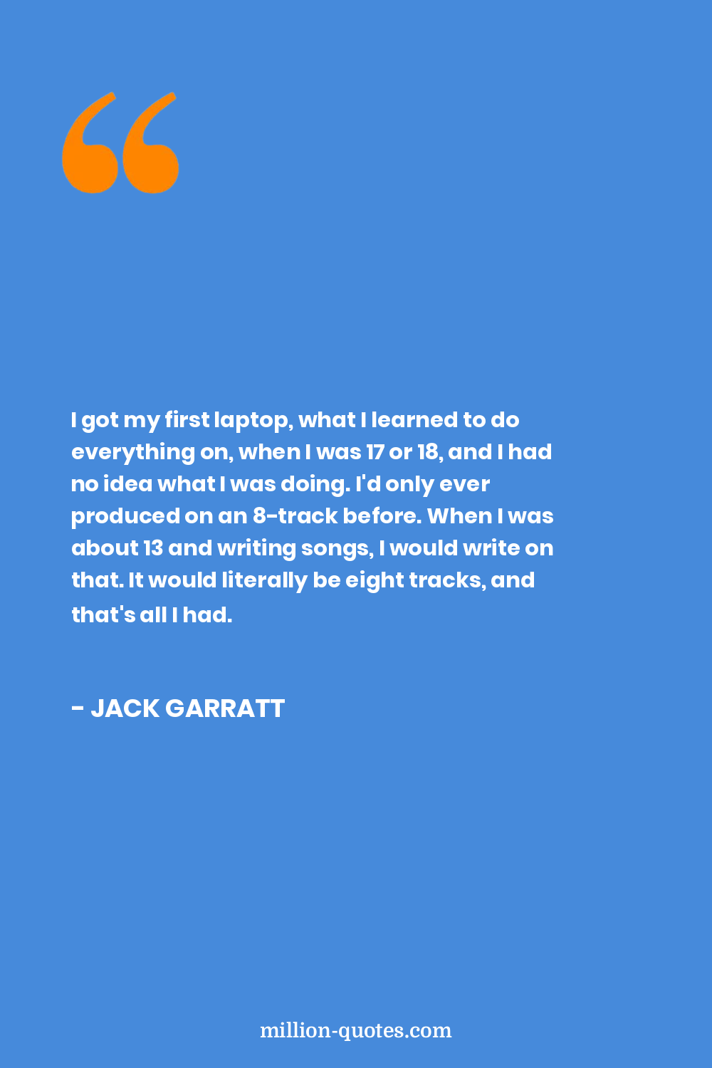 I got my first laptop, what I learned to do everything on, when I was 17 or 18, and I had no idea what I was doing. I'd only ever produced on an 8-track before. When I was about 13 and writing songs, I would write on that. It would literally be eight tracks, and that's all I had.