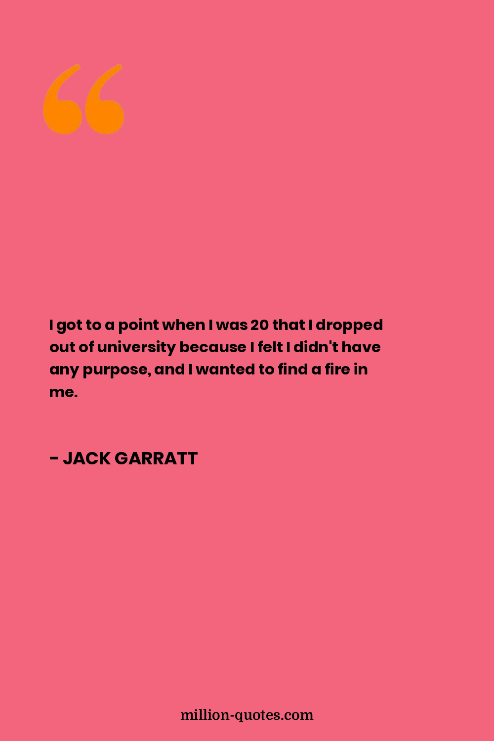 I got to a point when I was 20 that I dropped out of university because I felt I didn't have any purpose, and I wanted to find a fire in me.