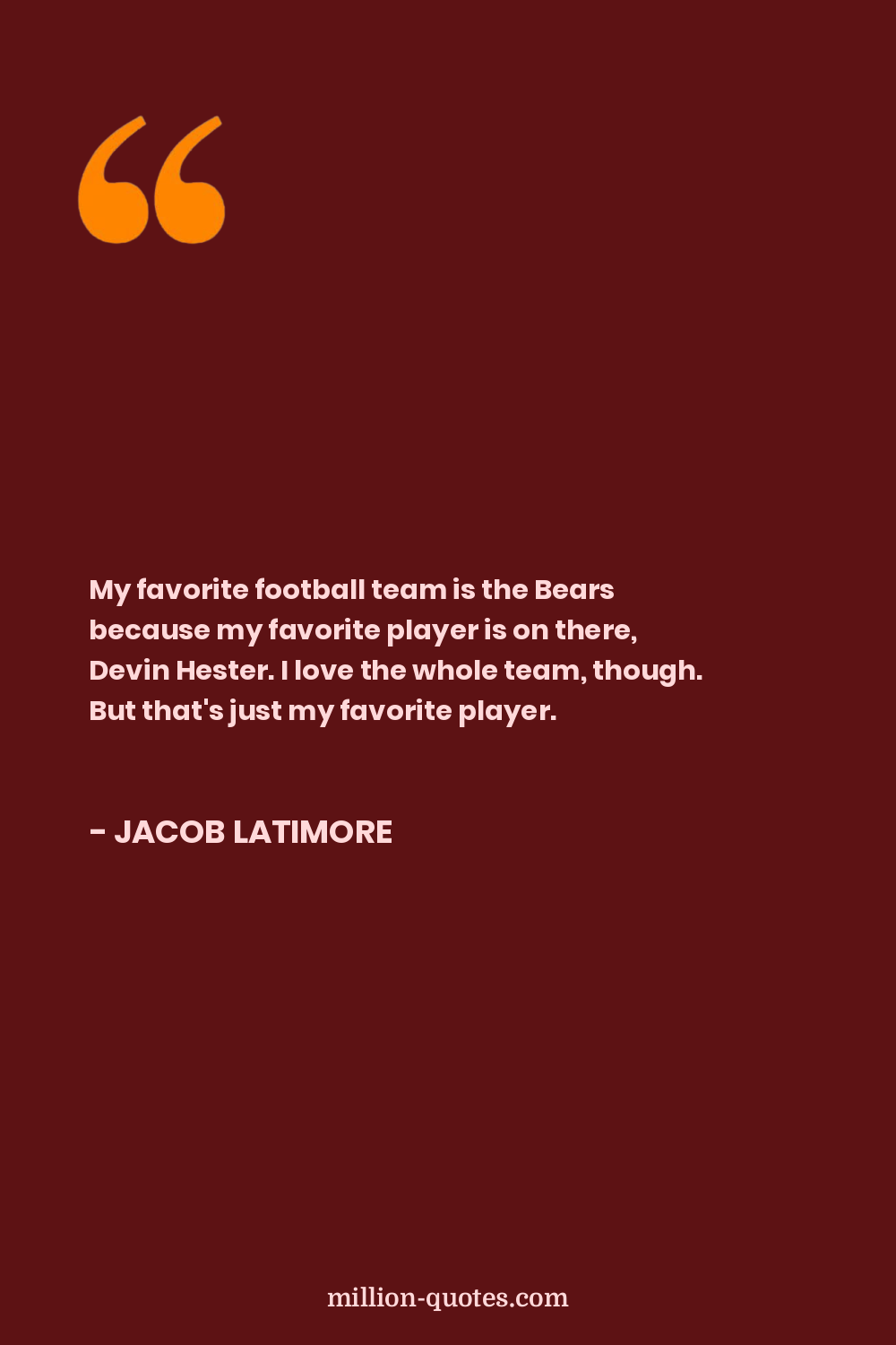 My favorite football team is the Bears because my favorite player is on there, Devin Hester. I love the whole team, though. But that's just my favorite player.