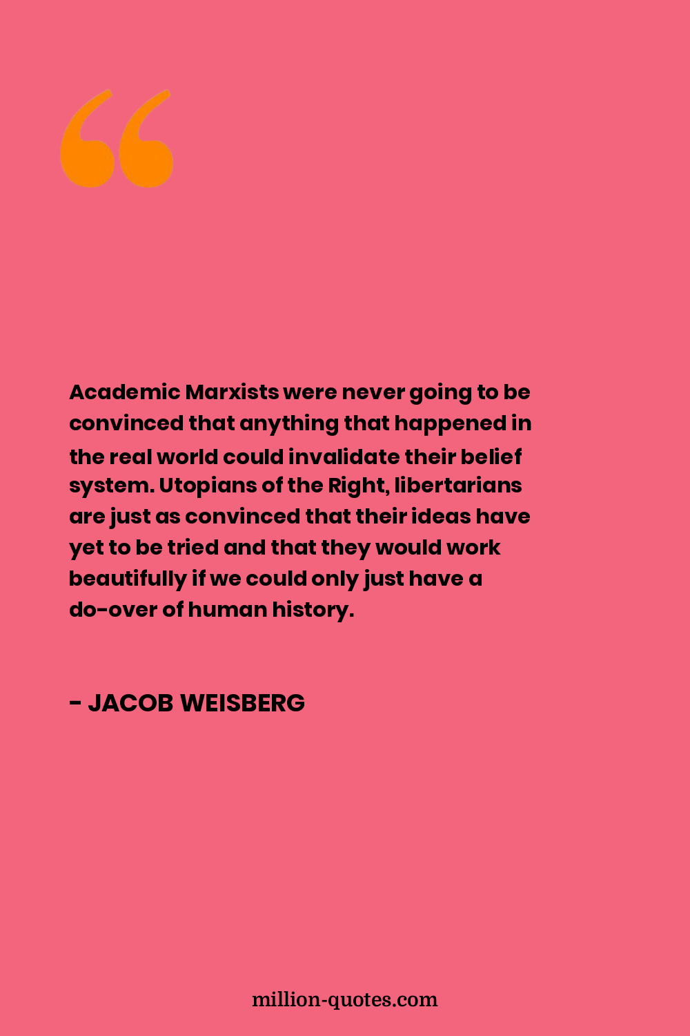 Academic Marxists were never going to be convinced that anything that happened in the real world could invalidate their belief system. Utopians of the Right, libertarians are just as convinced that their ideas have yet to be tried and that they would work beautifully if we could only just have a do-over of human history.