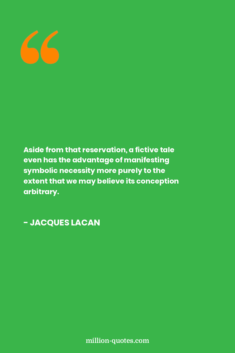Aside from that reservation, a fictive tale even has the advantage of manifesting symbolic necessity more purely to the extent that we may believe its conception arbitrary.