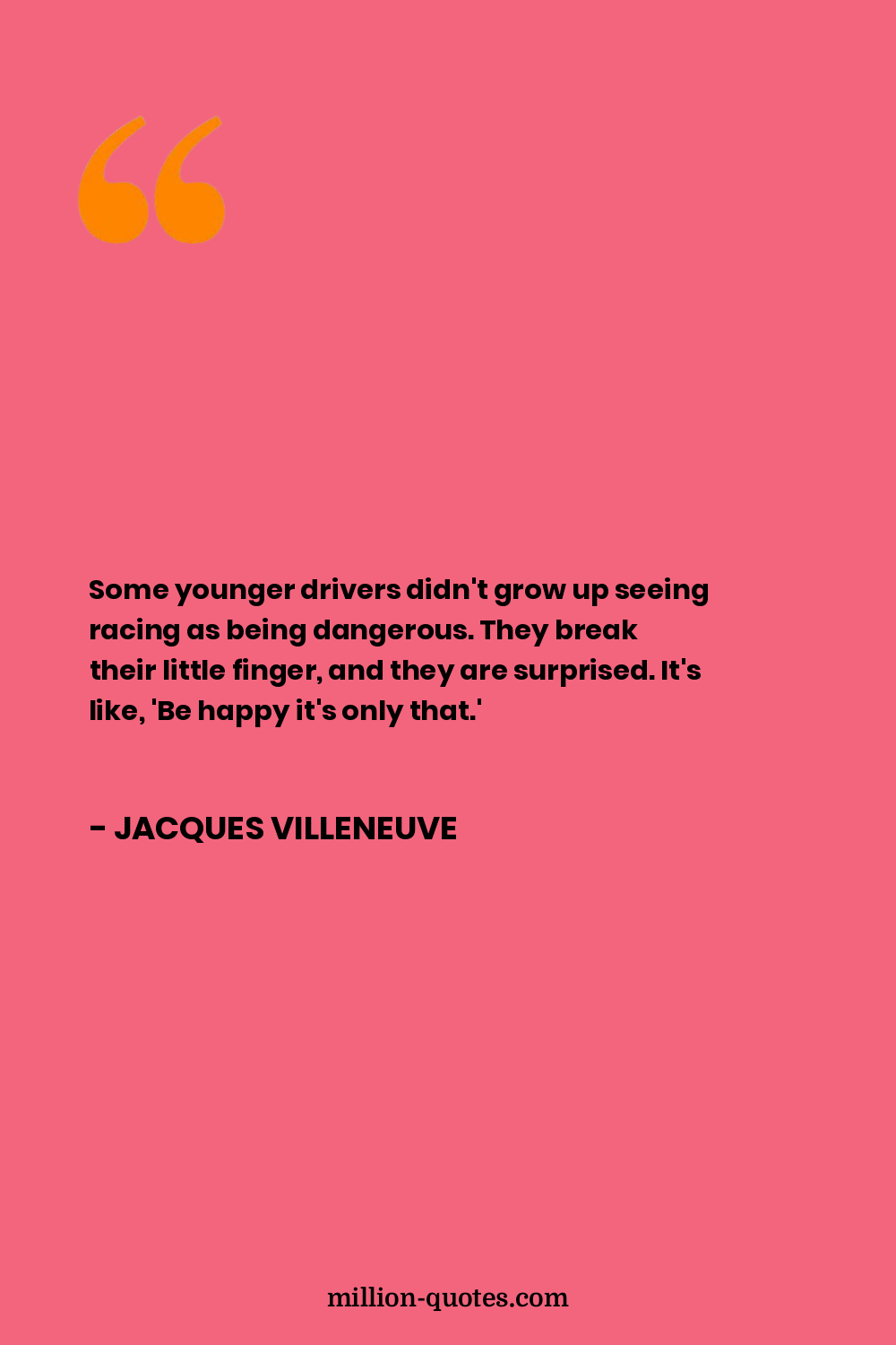 Some younger drivers didn't grow up seeing racing as being dangerous. They break their little finger, and they are surprised. It's like, 'Be happy it's only that.'