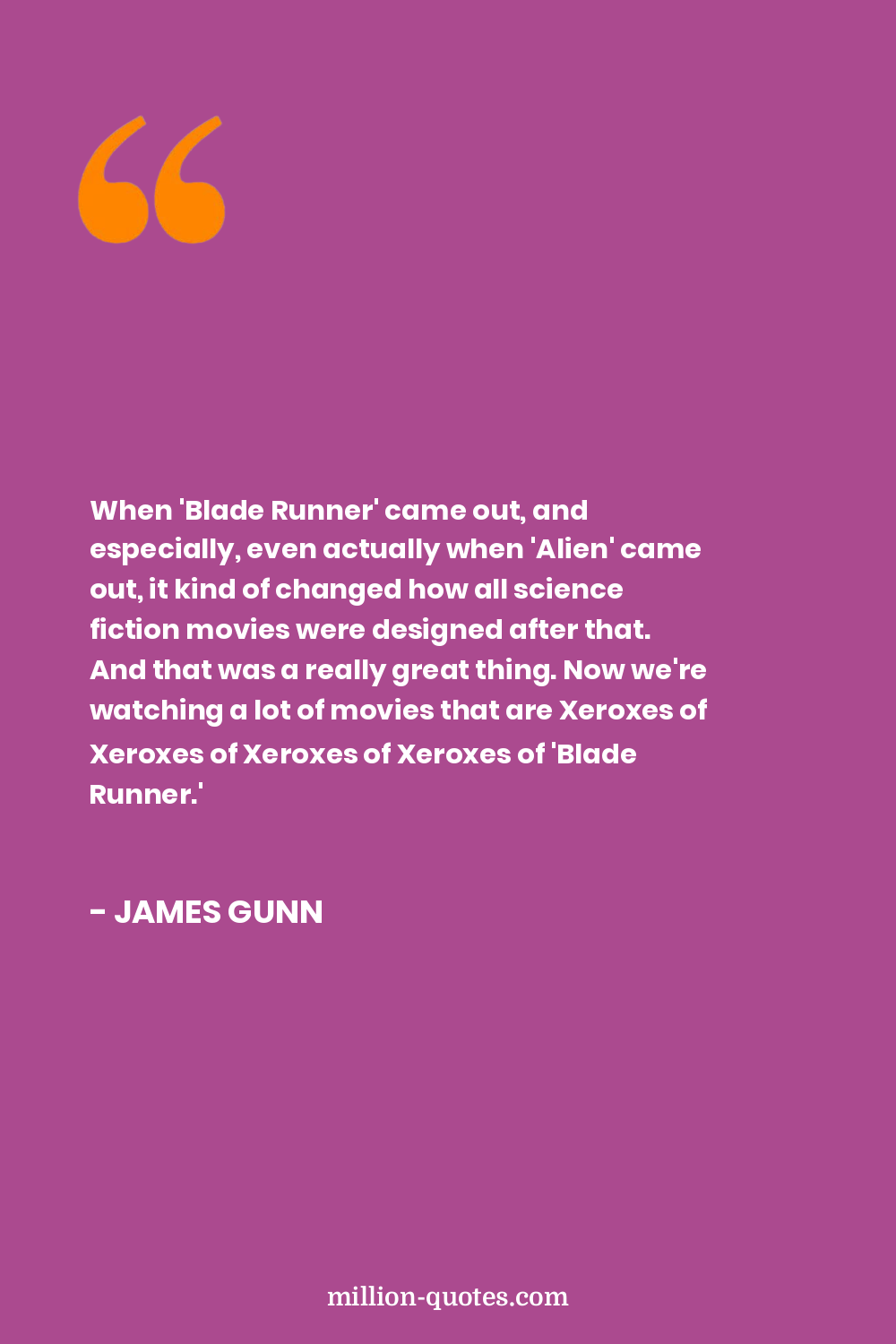 When 'Blade Runner' came out, and especially, even actually when 'Alien' came out, it kind of changed how all science fiction movies were designed after that. And that was a really great thing. Now we're watching a lot of movies that are Xeroxes of Xeroxes of Xeroxes of Xeroxes of 'Blade Runner.'