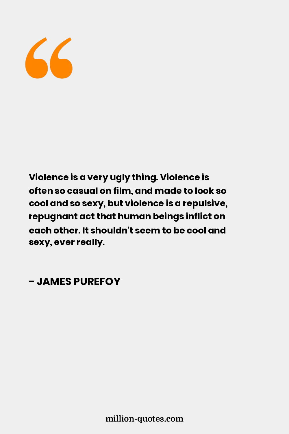 Violence is a very ugly thing. Violence is often so casual on film, and made to look so cool and so sexy, but violence is a repulsive, repugnant act that human beings inflict on each other. It shouldn't seem to be cool and sexy, ever really.