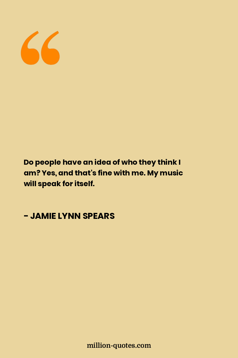 Do people have an idea of who they think I am? Yes, and that's fine with me. My music will speak for itself.