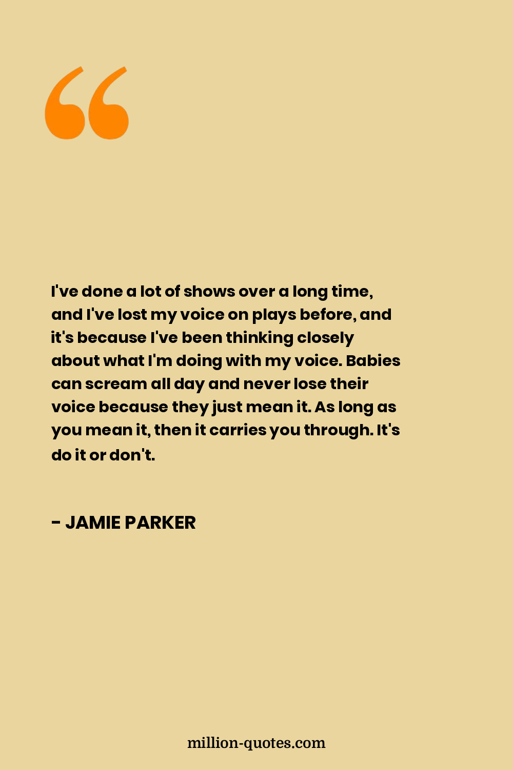 I've done a lot of shows over a long time, and I've lost my voice on plays before, and it's because I've been thinking closely about what I'm doing with my voice. Babies can scream all day and never lose their voice because they just mean it. As long as you mean it, then it carries you through. It's do it or don't.