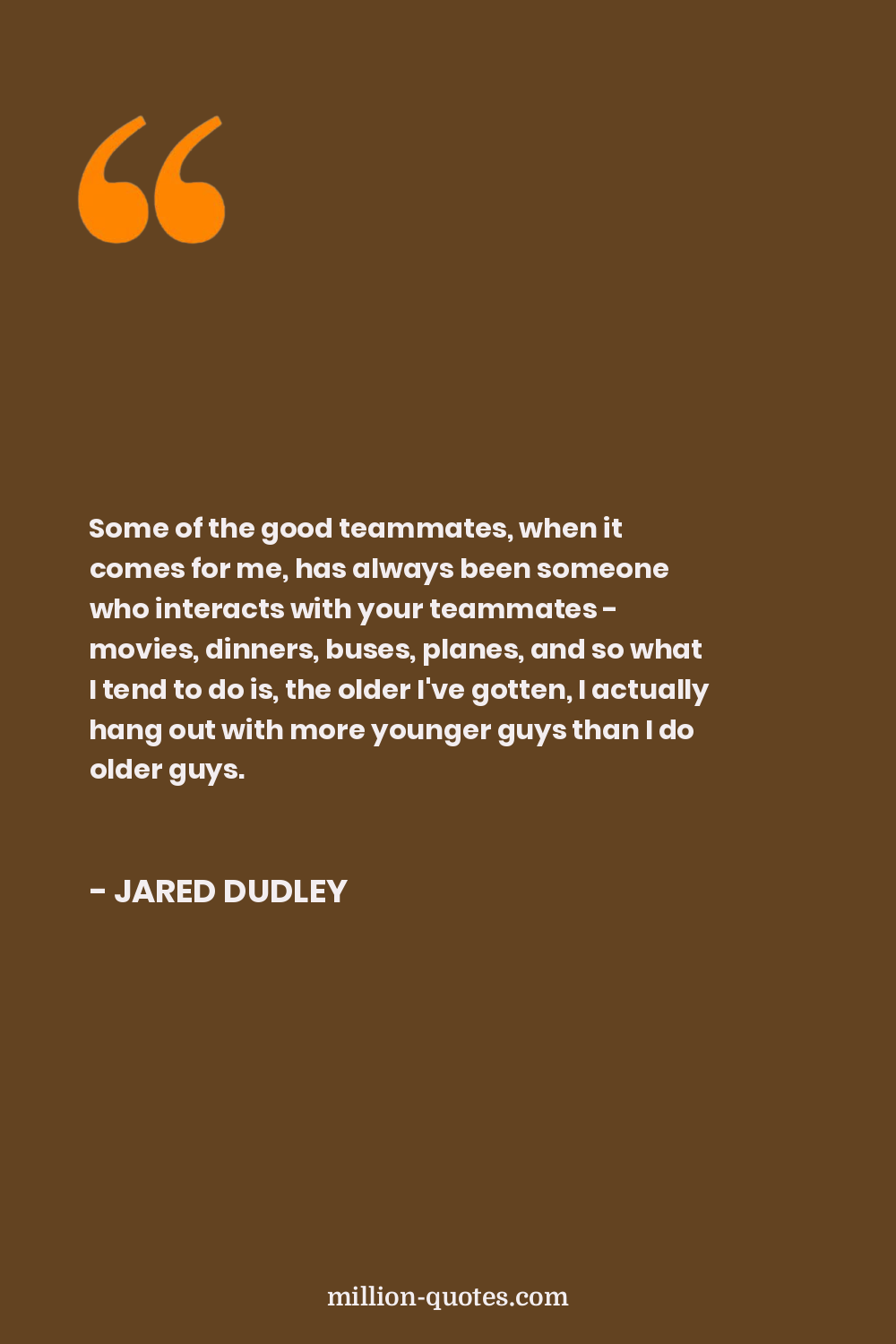Some of the good teammates, when it comes for me, has always been someone who interacts with your teammates - movies, dinners, buses, planes, and so what I tend to do is, the older I've gotten, I actually hang out with more younger guys than I do older guys.