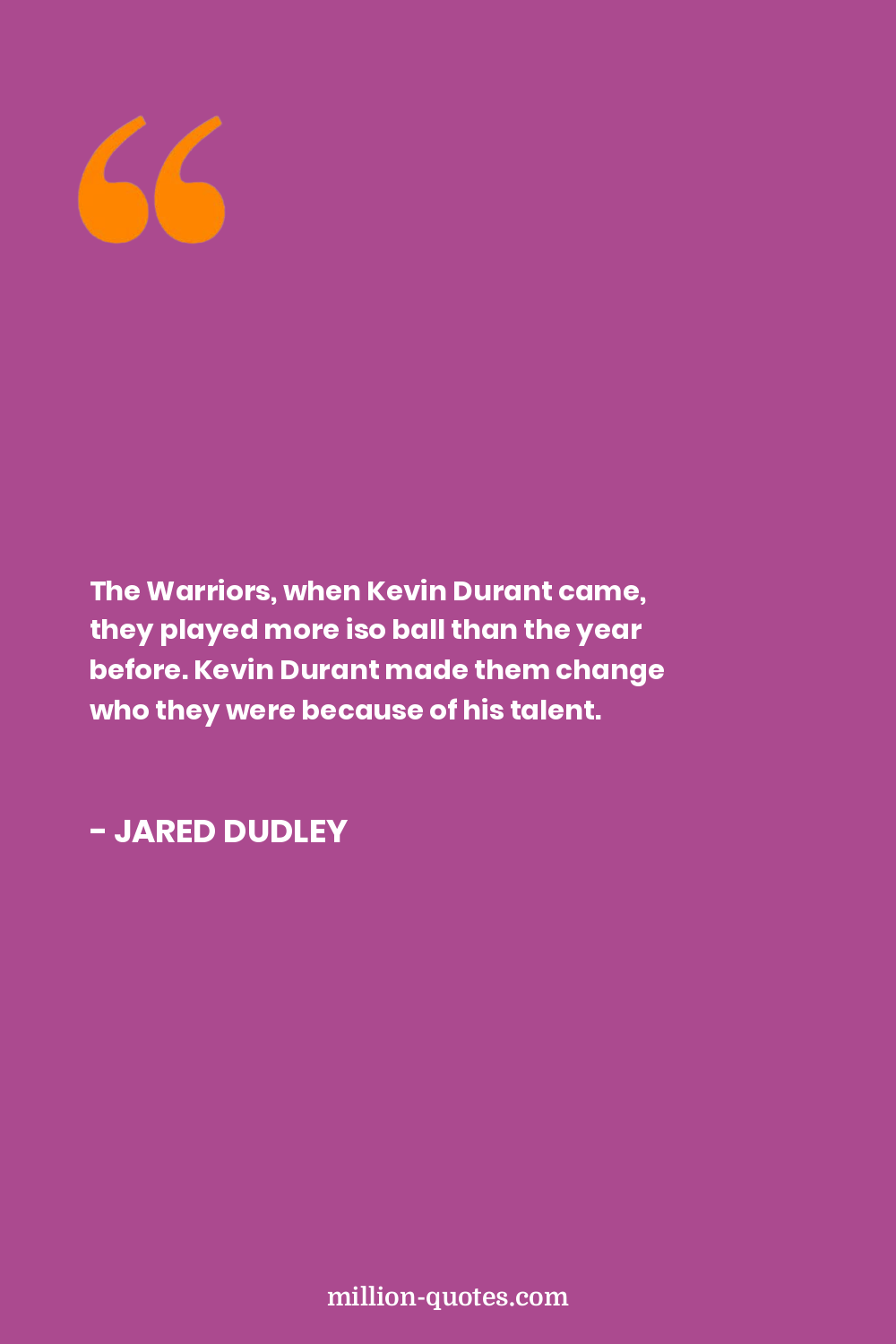 The Warriors, when Kevin Durant came, they played more iso ball than the year before. Kevin Durant made them change who they were because of his talent.