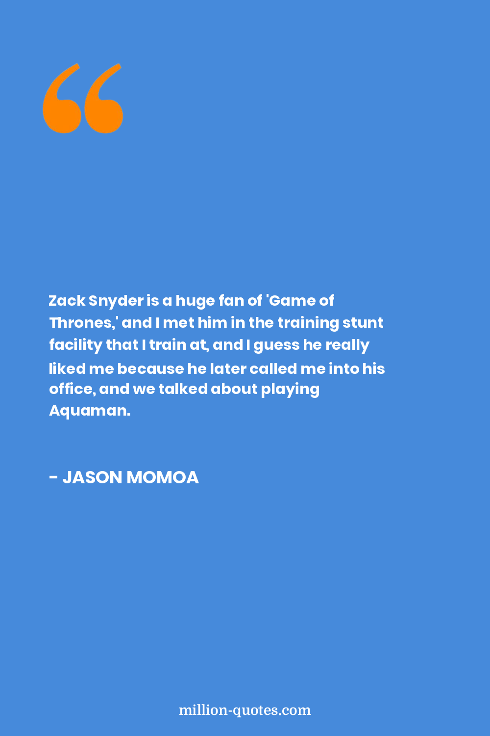Zack Snyder is a huge fan of 'Game of Thrones,' and I met him in the training stunt facility that I train at, and I guess he really liked me because he later called me into his office, and we talked about playing Aquaman.