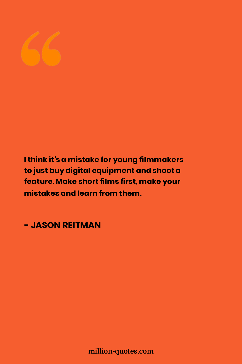 I think it's a mistake for young filmmakers to just buy digital equipment and shoot a feature. Make short films first, make your mistakes and learn from them.