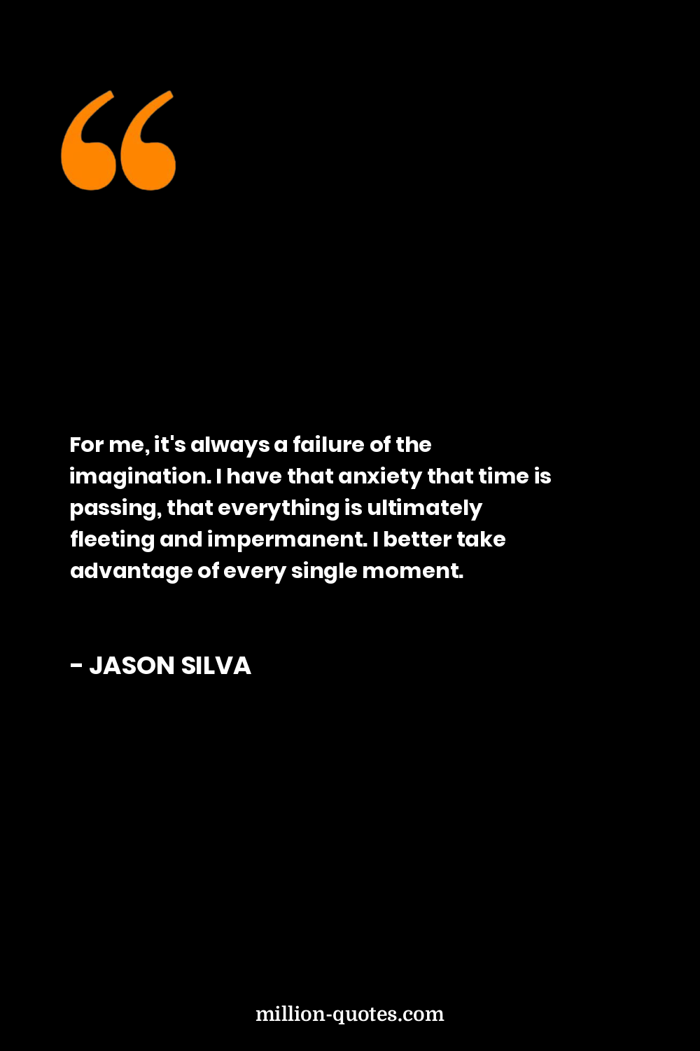 For me, it's always a failure of the imagination. I have that anxiety that time is passing, that everything is ultimately fleeting and impermanent. I better take advantage of every single moment.