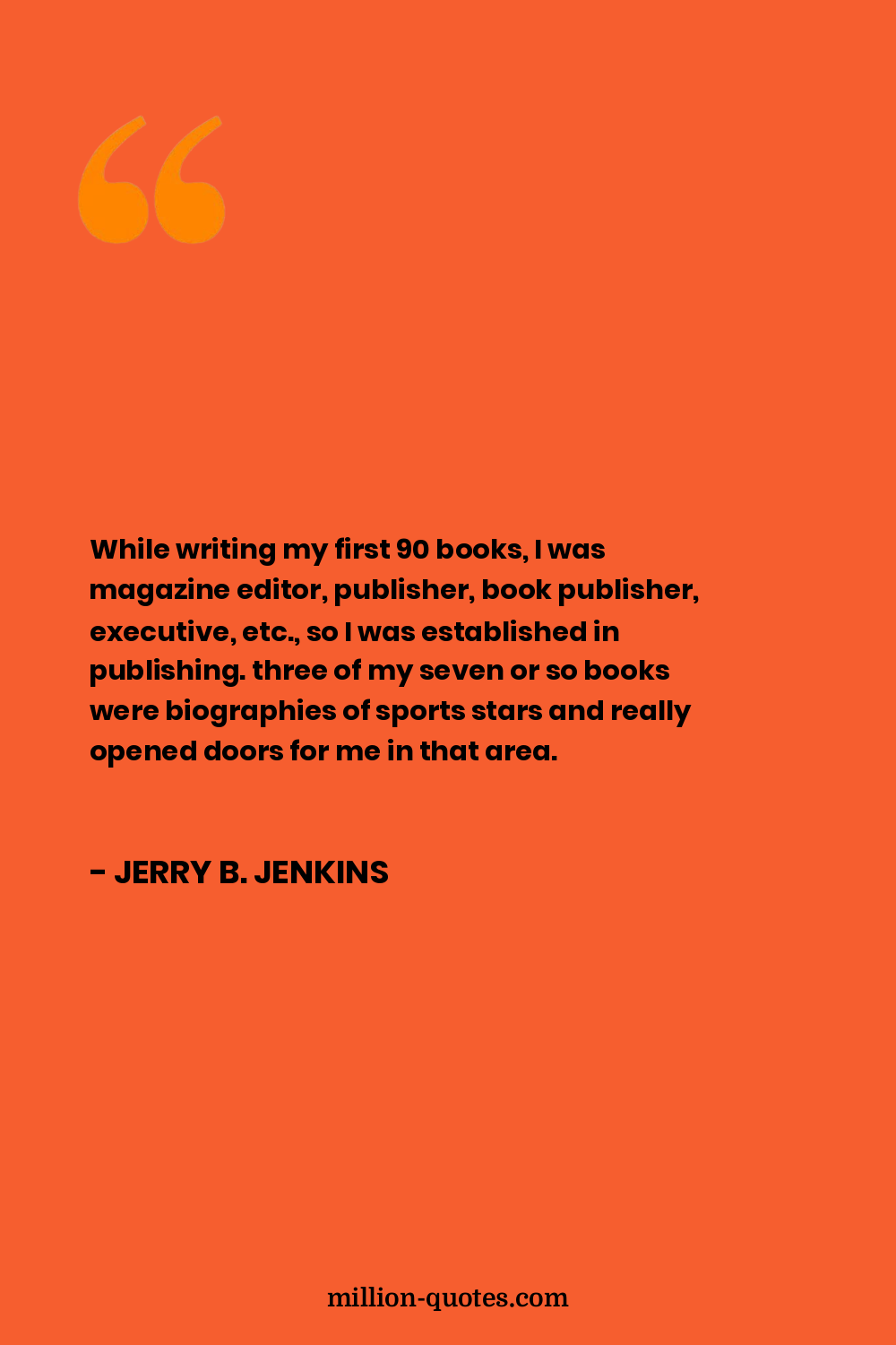 While writing my first 90 books, I was magazine editor, publisher, book publisher, executive, etc., so I was established in publishing. three of my seven or so books were biographies of sports stars and really opened doors for me in that area.