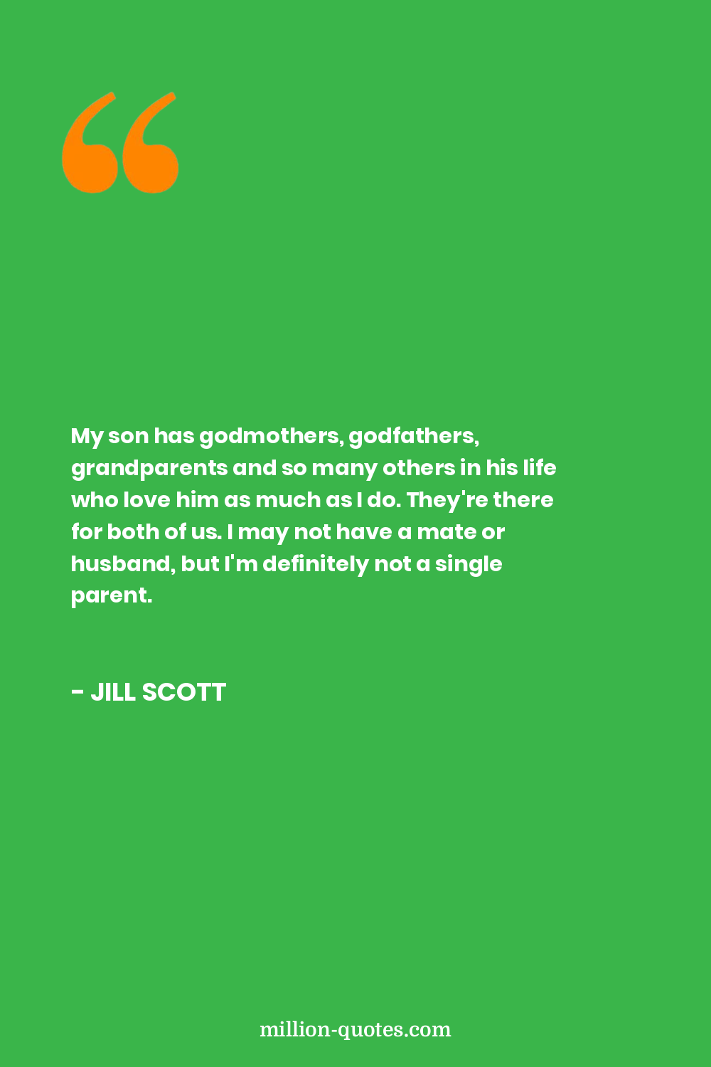 My son has godmothers, godfathers, grandparents and so many others in his life who love him as much as I do. They're there for both of us. I may not have a mate or husband, but I'm definitely not a single parent.