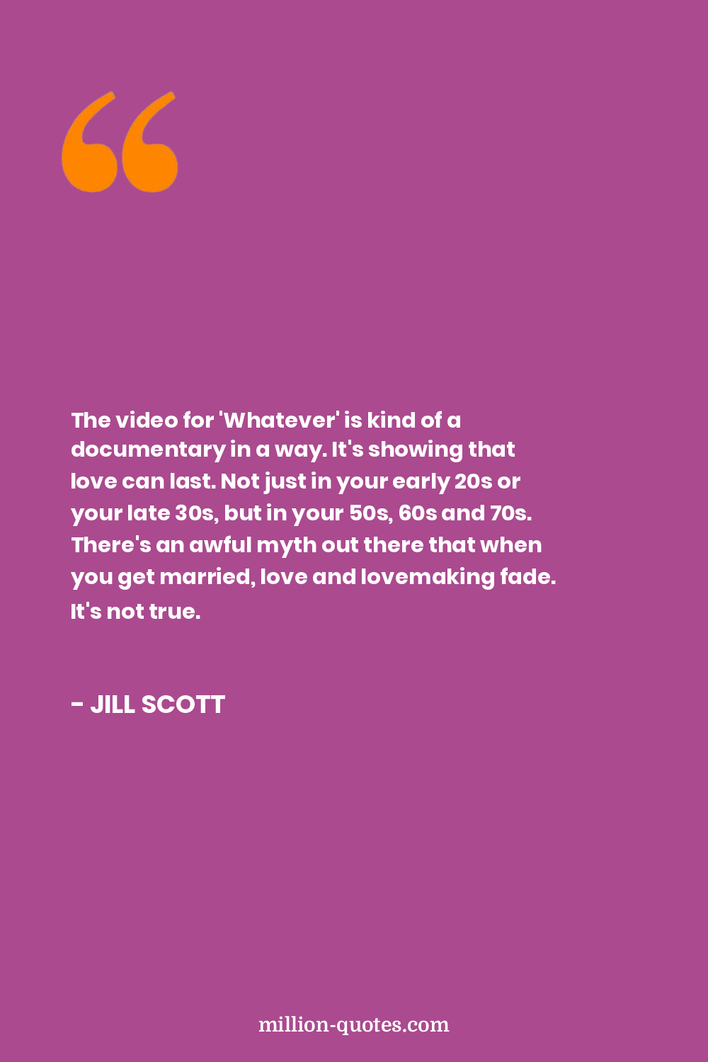 The video for 'Whatever' is kind of a documentary in a way. It's showing that love can last. Not just in your early 20s or your late 30s, but in your 50s, 60s and 70s. There's an awful myth out there that when you get married, love and lovemaking fade. It's not true.