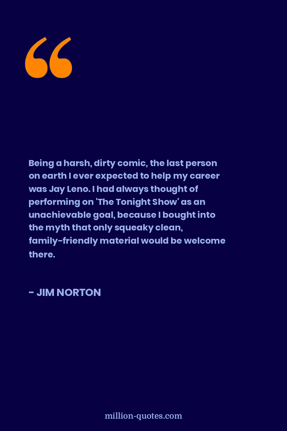 Being a harsh, dirty comic, the last person on earth I ever expected to help my career was Jay Leno. I had always thought of performing on 'The Tonight Show' as an unachievable goal, because I bought into the myth that only squeaky clean, family-friendly material would be welcome there.