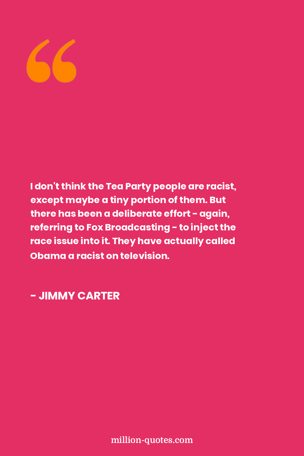 I don't think the Tea Party people are racist, except maybe a tiny portion of them. But there has been a deliberate effort - again, referring to Fox Broadcasting - to inject the race issue into it. They have actually called Obama a racist on television.