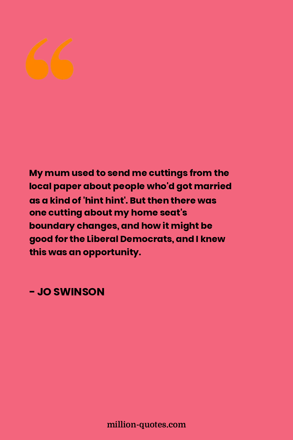 My mum used to send me cuttings from the local paper about people who'd got married as a kind of 'hint hint'. But then there was one cutting about my home seat's boundary changes, and how it might be good for the Liberal Democrats, and I knew this was an opportunity.