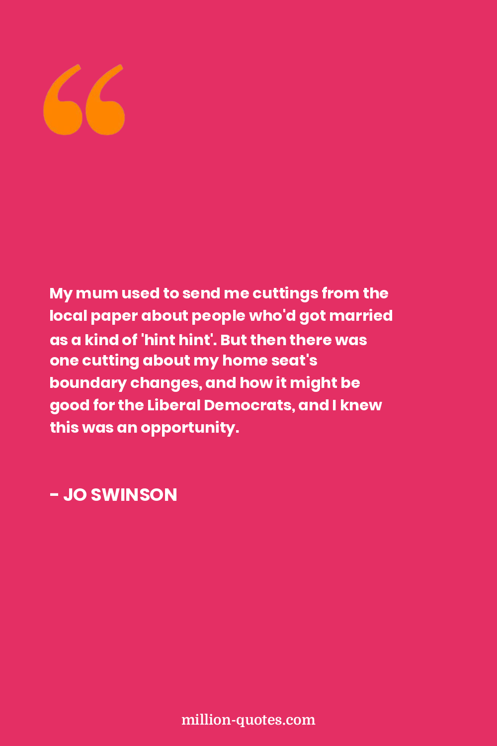 My mum used to send me cuttings from the local paper about people who'd got married as a kind of 'hint hint'. But then there was one cutting about my home seat's boundary changes, and how it might be good for the Liberal Democrats, and I knew this was an opportunity.