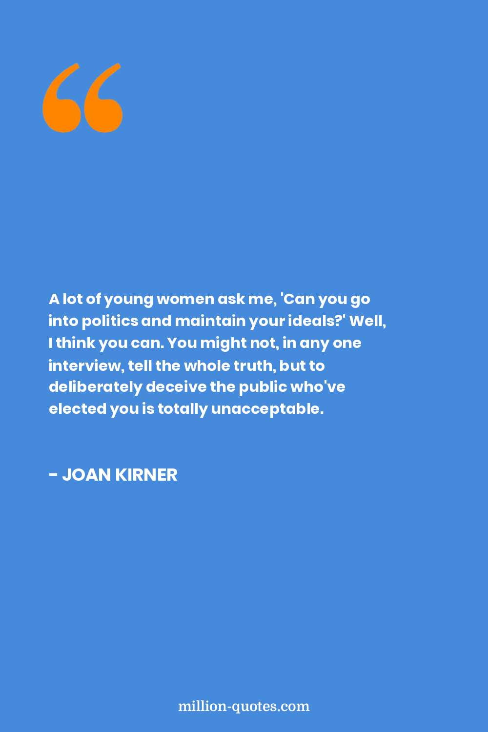 A lot of young women ask me, 'Can you go into politics and maintain your ideals?' Well, I think you can. You might not, in any one interview, tell the whole truth, but to deliberately deceive the public who've elected you is totally unacceptable.