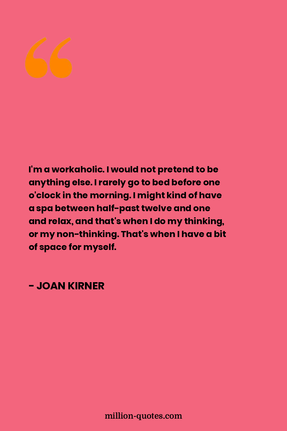 I'm a workaholic. I would not pretend to be anything else. I rarely go to bed before one o'clock in the morning. I might kind of have a spa between half-past twelve and one and relax, and that's when I do my thinking, or my non-thinking. That's when I have a bit of space for myself.