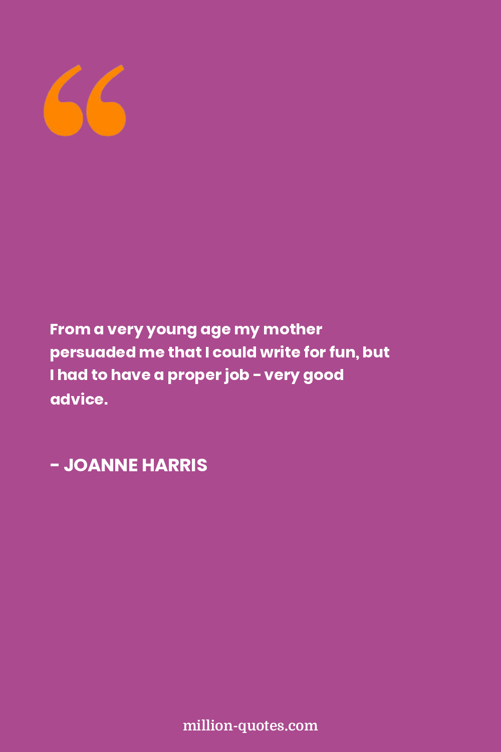 From a very young age my mother persuaded me that I could write for fun, but I had to have a proper job - very good advice.