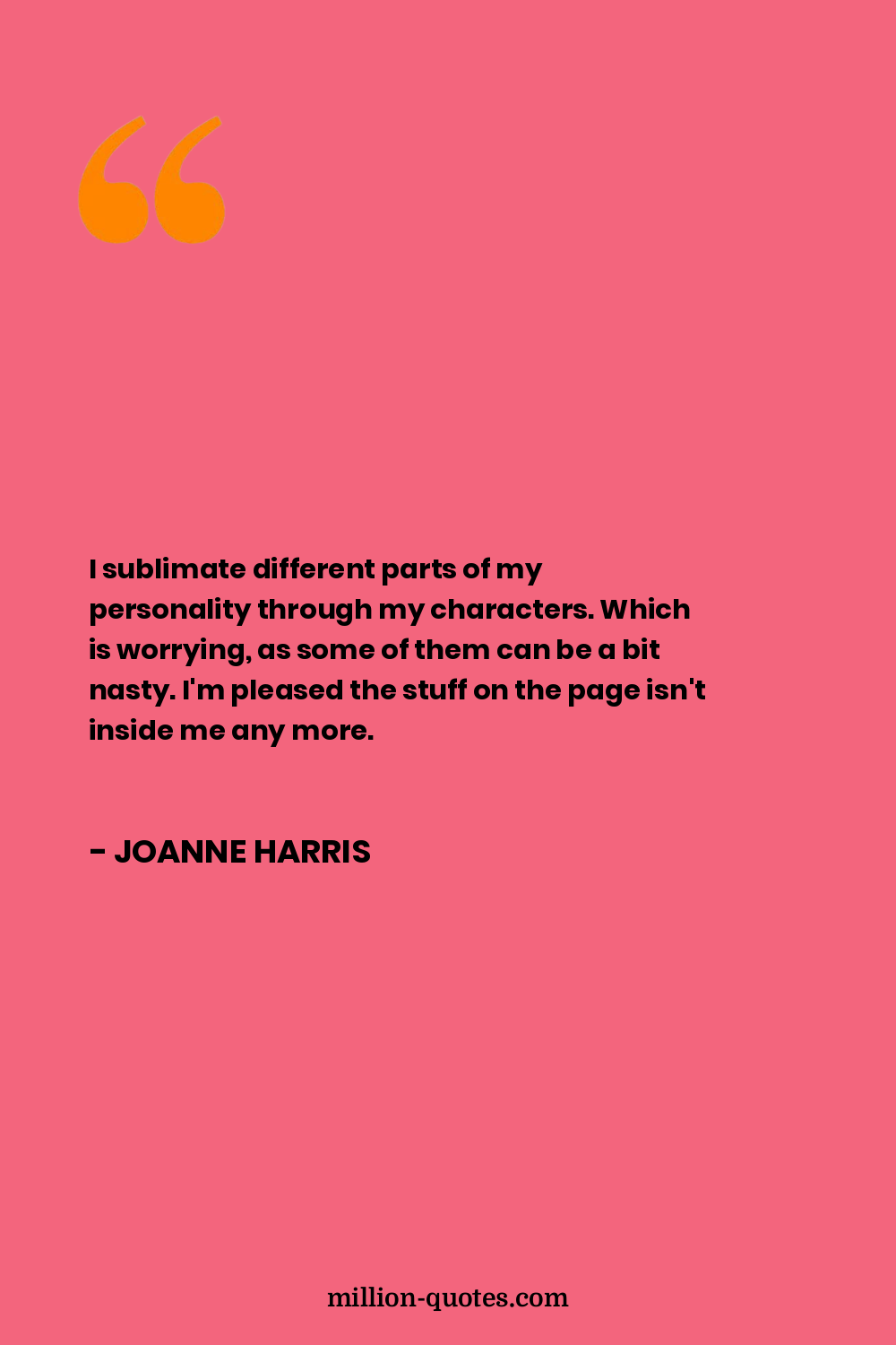 I sublimate different parts of my personality through my characters. Which is worrying, as some of them can be a bit nasty. I'm pleased the stuff on the page isn't inside me any more.