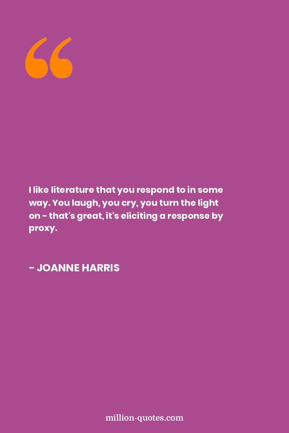 I like literature that you respond to in some way. You laugh, you cry, you turn the light on - that's great, it's eliciting a response by proxy.