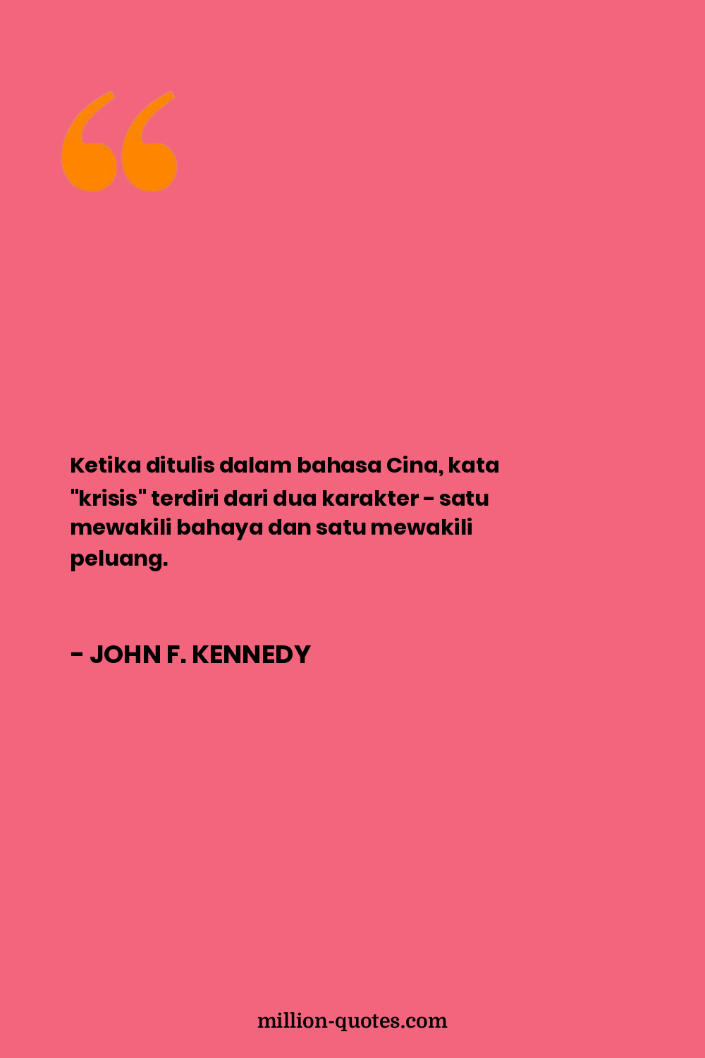 Ketika ditulis dalam bahasa Cina, kata "krisis" terdiri dari dua karakter - satu mewakili bahaya dan satu mewakili peluang.